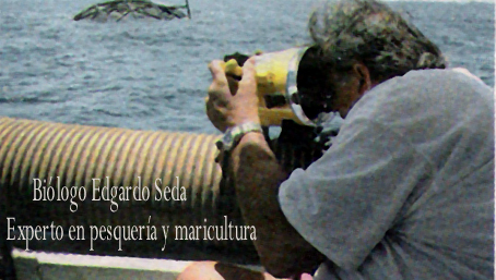 experto en maricultura quien espera en una jaula de 65 pies de