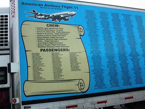 The Tribute of The Carriers John and Amy Holmgren. John made the graphics and Paul Kisenski the hand paiting. .It has all the names to the people that lost their lives plus other graphics